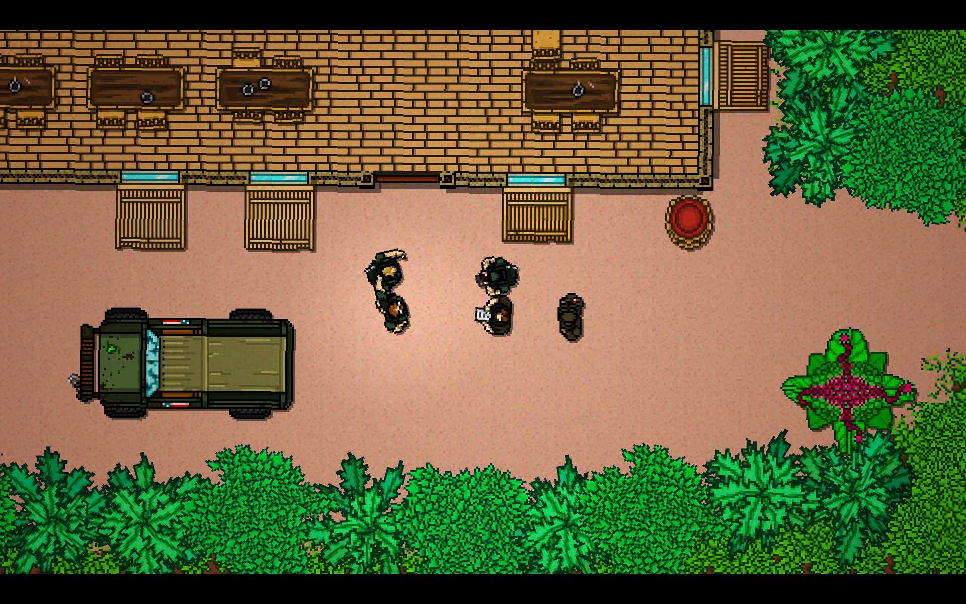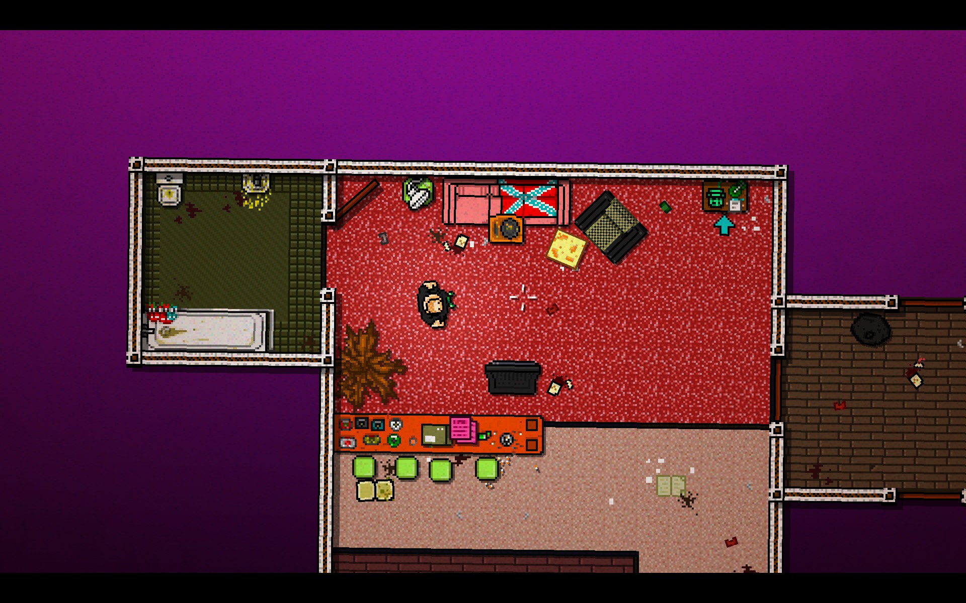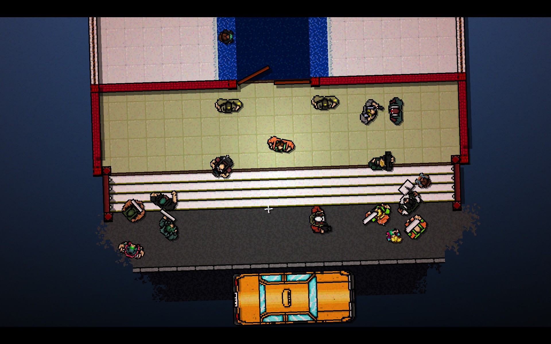 The graphics are a very retro styled and colourful. The audio is good. Hotline Miami has excellent music, music I still listen to till this day and Hotline Miami 2 has not disappointed in this department.