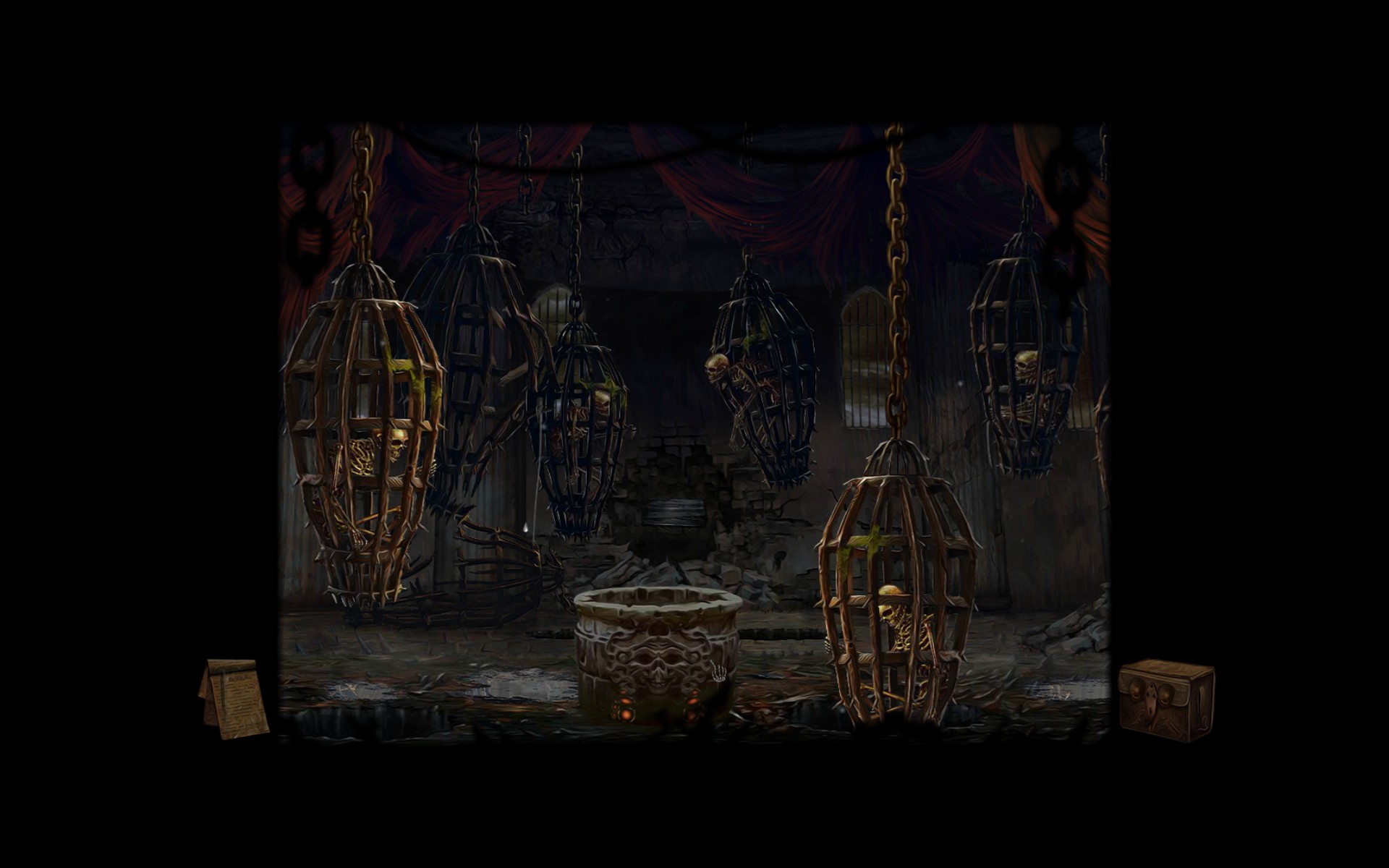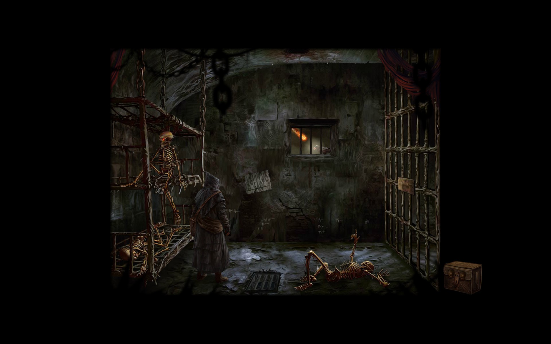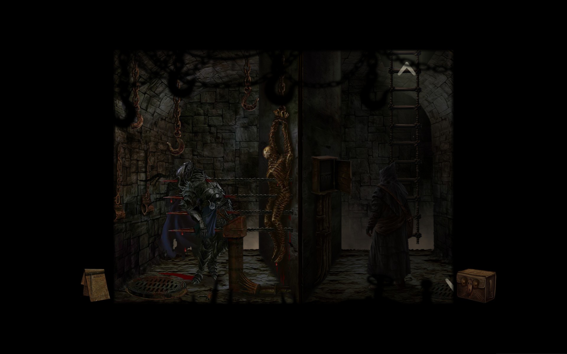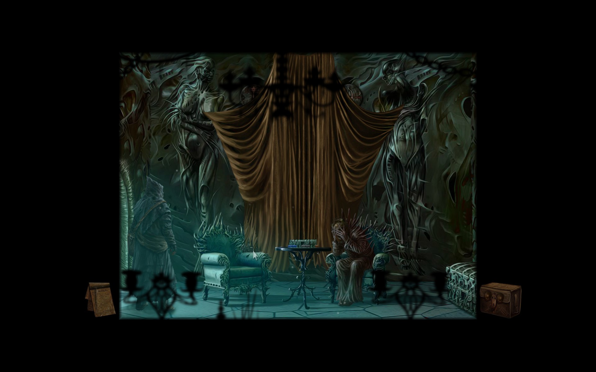 Gameplay involves clicking to interact with objects and clicking on arrows at the edges of the screen to move between areas. Your character does not move. Dialogue with other characters is one way and has no options. Usually the dialogue will prompt you to make a decision in order to progress. For example, after speaking to a jester I had to decide weather to kill a caged woman or set her free. All these the kinds of decisions are remembered and used to pick the game ending you receive.