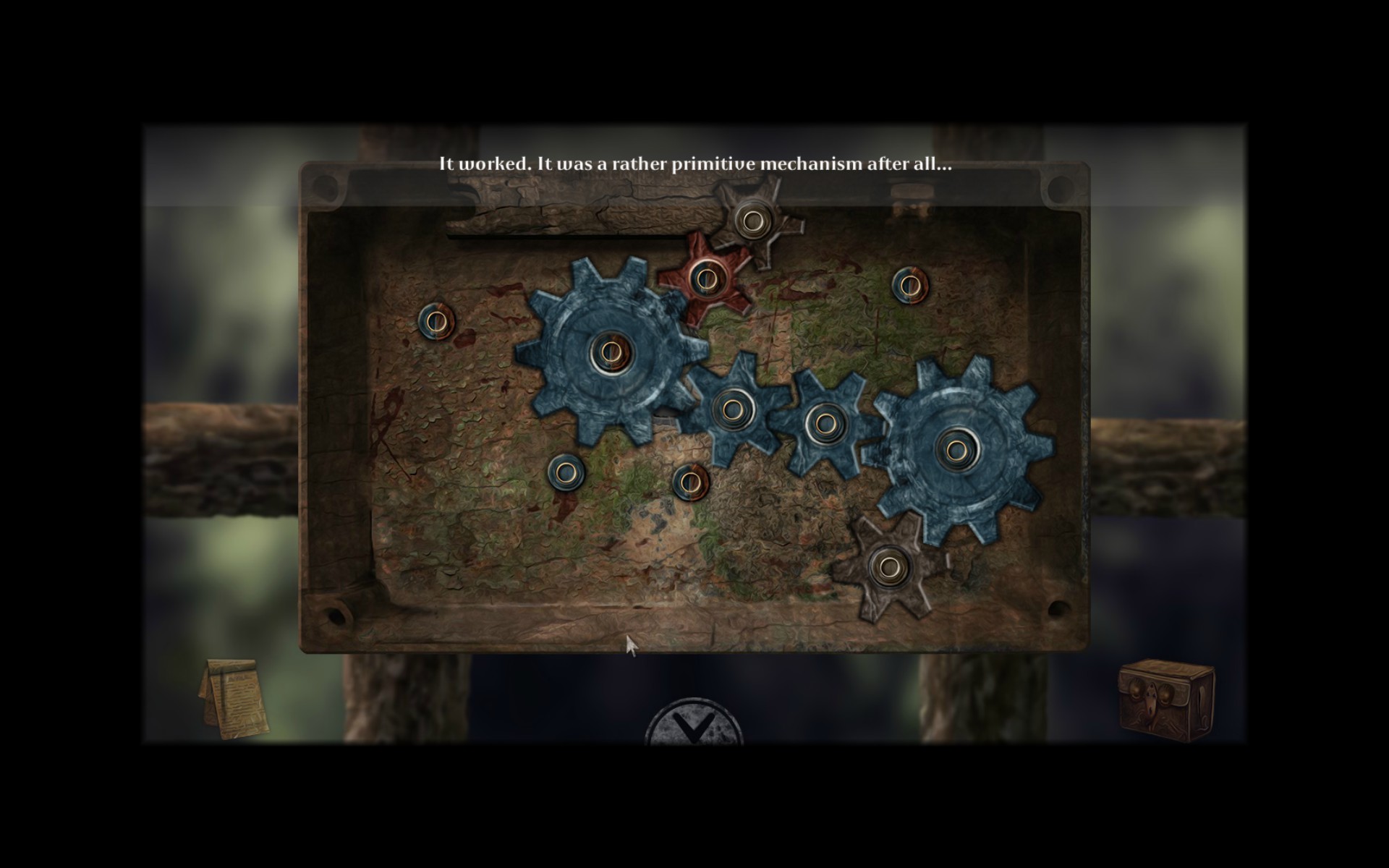 The puzzles all seemed to be very well balanced in difficulty. The game contained just the right amount of puzzle variety and frequency to keep it fun and interesting. Puzzles mostly consisted of moving shapes around to fit, pipe flow like mini games and occasional cog fitting games.