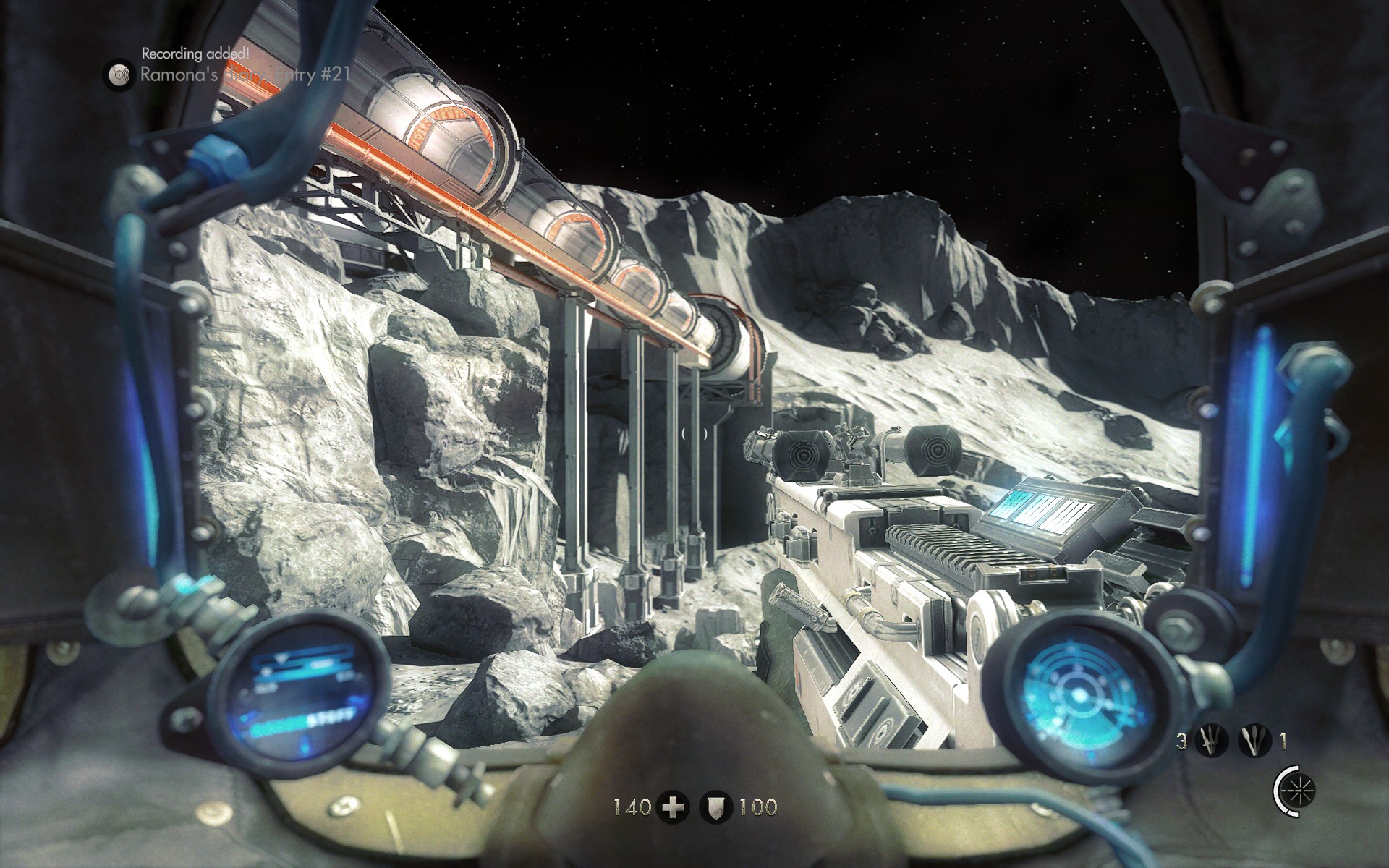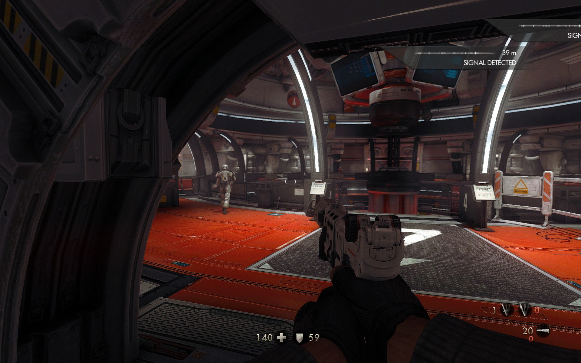 The perk system which is quite neat, it made me try new weapons and different ways of playing the game. You unlock perks by completing certain requirements like killing 80 people from behind cover with an assault rifle to upgrade the clip size or killing two people with a grenade to unlock the ability to throw a grenade back. Sadly the perks don’t really make any noticeable difference and you could quite easily play through without them. Another cool mechanic is the ability to use the laser cannon as a cutting tool to cut through metal and wire fencing. I can’t help feeling this mechanic would have been better suited to a slower paced game as the only times you really end up using the cutter is during parts with no enemies or when trying to stealth through vents. Any kind of flow is quickly ruined by having to manually collect items from the floor. This leads to running around spamming the use key after every fight; I think it would have been better if ammo was automatically collected. The AI is terrible, standard enemies just run at you while larger ones try to do the same but inevitably get stuck and end up standing around idly.
