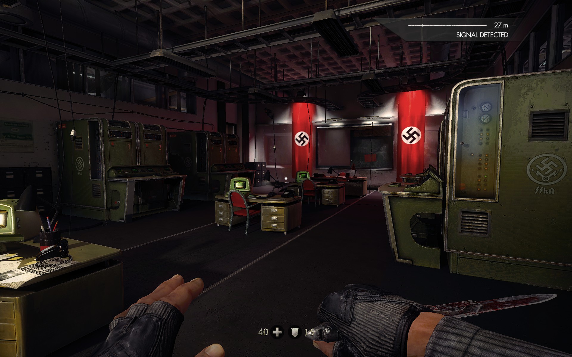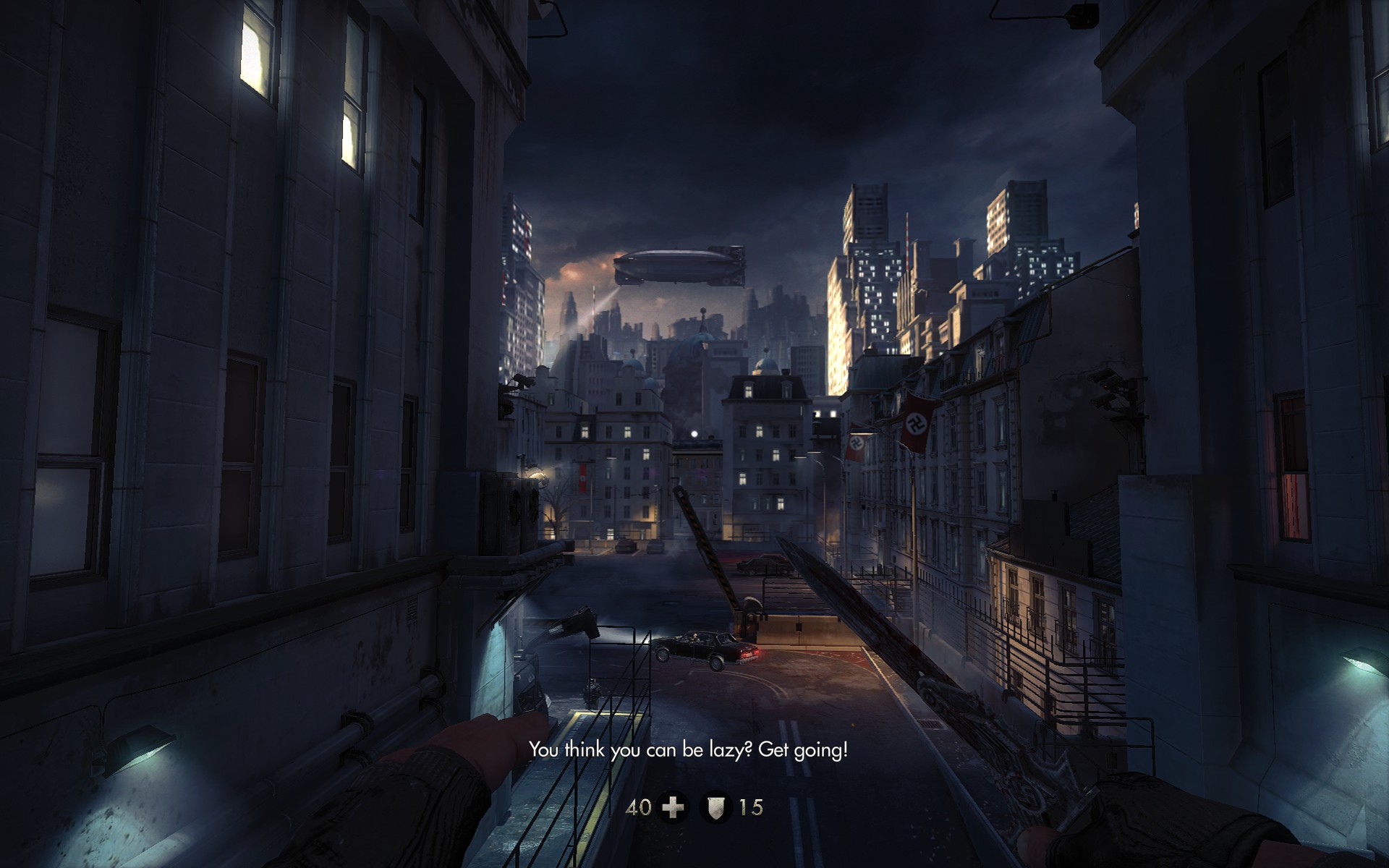 The game involves going from area to area killing all the baddies. Sometimes an area will have an officer or two who will raise a reinforcement alarm if you are detected so you want to kill these guys as soon as possible. There will be a cut-scene roughly once between every other area. Shooting is for the most part fairly unsatisfying, increasingly so late game as the enemies absorb more and more damage and you end up feeling you’re shooting plastic balls. There are some moments of satisfaction to be had when you shoot a Nazi’s head clean off or explode their entire body with the laser cannon. Areas are always too small and with little to no room for any kind of exploration, this could easily be described as a on-the-rails shooter. I’m not sure why other reviewers have praised the story as it is primarily cringe-worthy (especially the love story) and tries way too hard. I couldn’t tell if the story was trying to be serious or not. The cut-scenes show what the game could have been by hinting at a massive world with extensive concrete Nazi cities only for all the missions to be set in small areas such as sewers or corridors. I kind of get the impression the developers were told to create the next Half-Life with a dose of Dishonoured but were only given a small period of time to deliver. You can see hints of what the game could have been but for me it just didn’t breached into that territory enough.