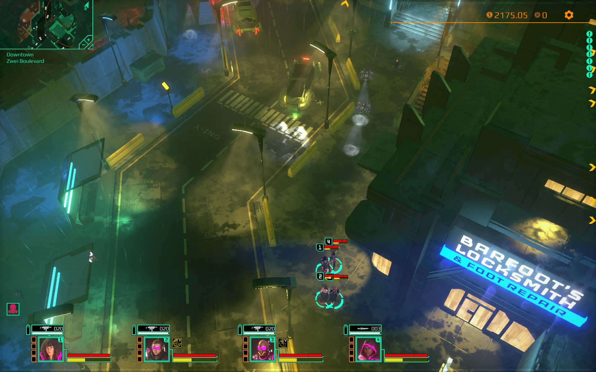 Satellite Reign is a top down tactics game set in a cyberpunk city. The game is dubbed as a spiritual successor to Syndicate and even has some of the original developers involved. Funding was received by Kickstater in July 2013 and the game was released in August 2015.
