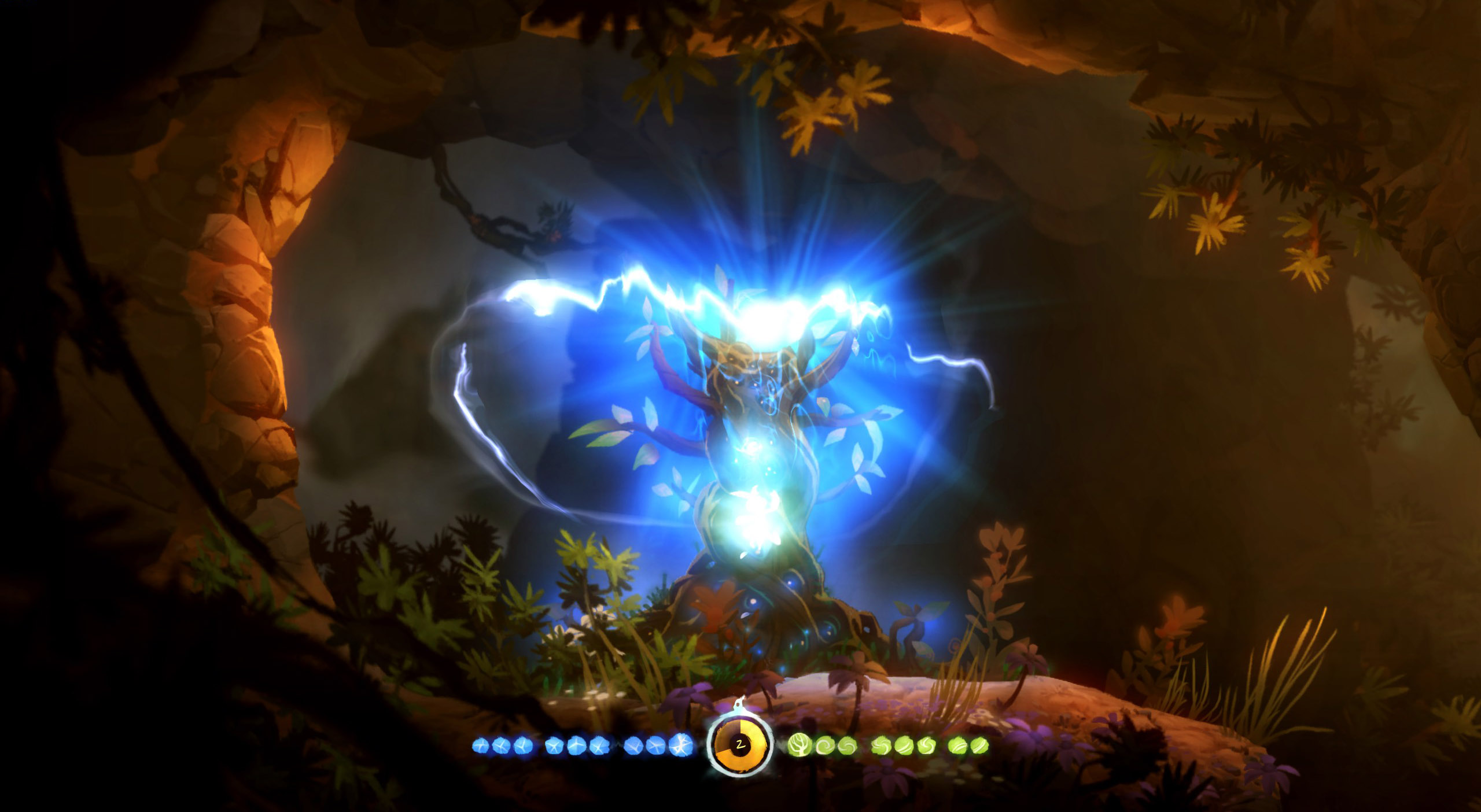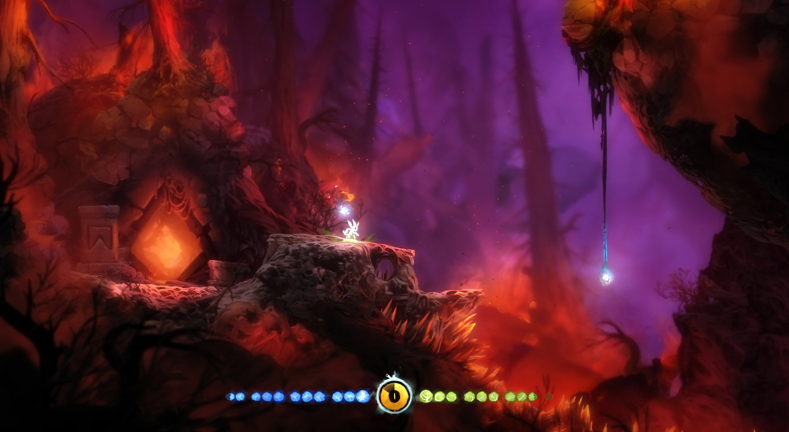 These escape sequences are Ori at its best and most frustrating. As there are no opportunities to drop a soul link you have to complete the sequence flawlessly or start again. I guess these are similar to the Rayman chase sequences of the recent games, and you get the same satisfying buzz from completing a section (after many, many rages!). You’ll be jumping, gliding, zooming, wall jumping, double jumping, zooming off a light, zooming off an enemy missile attack and gliding over an entire section of spiky area in no time.