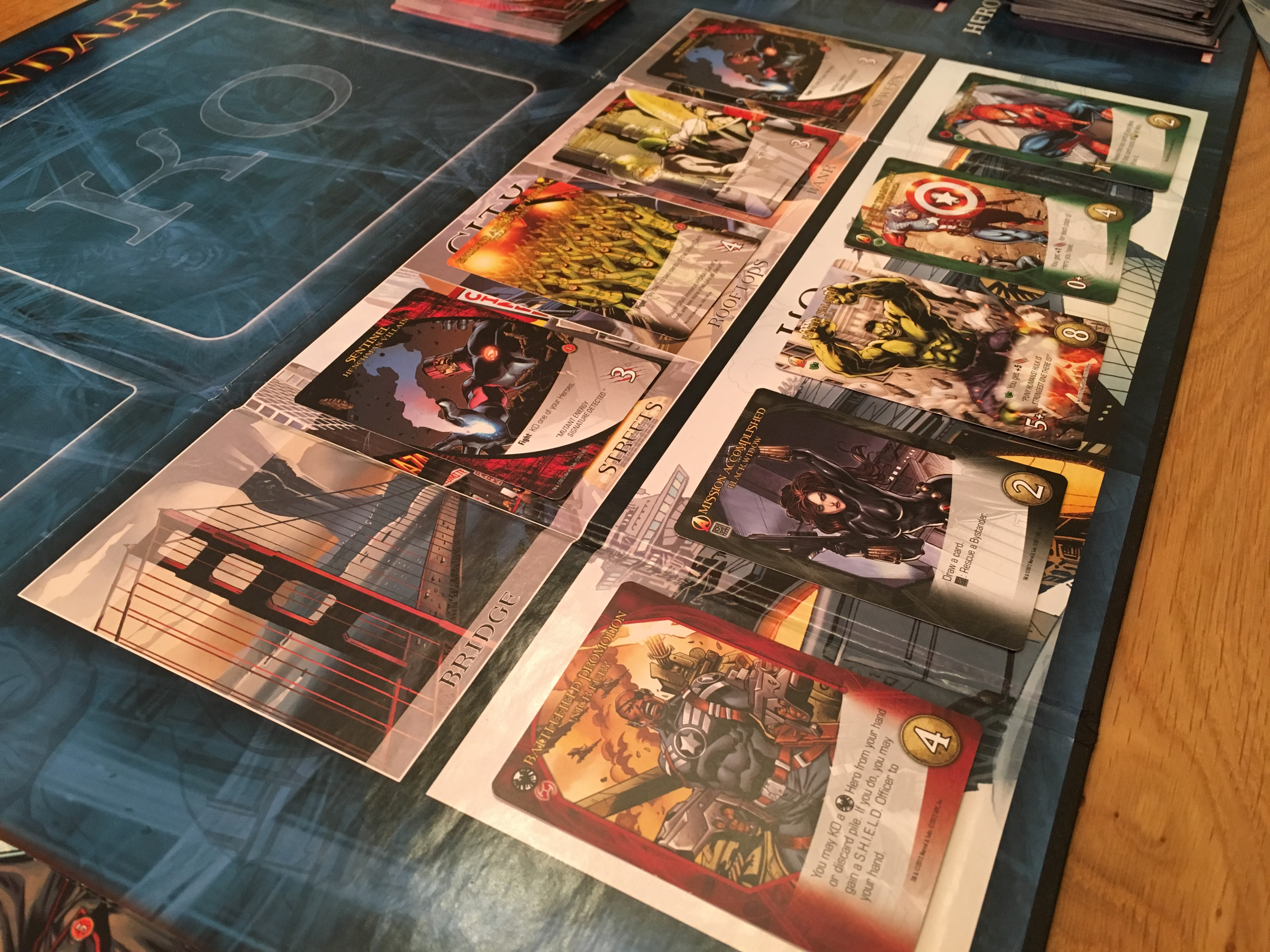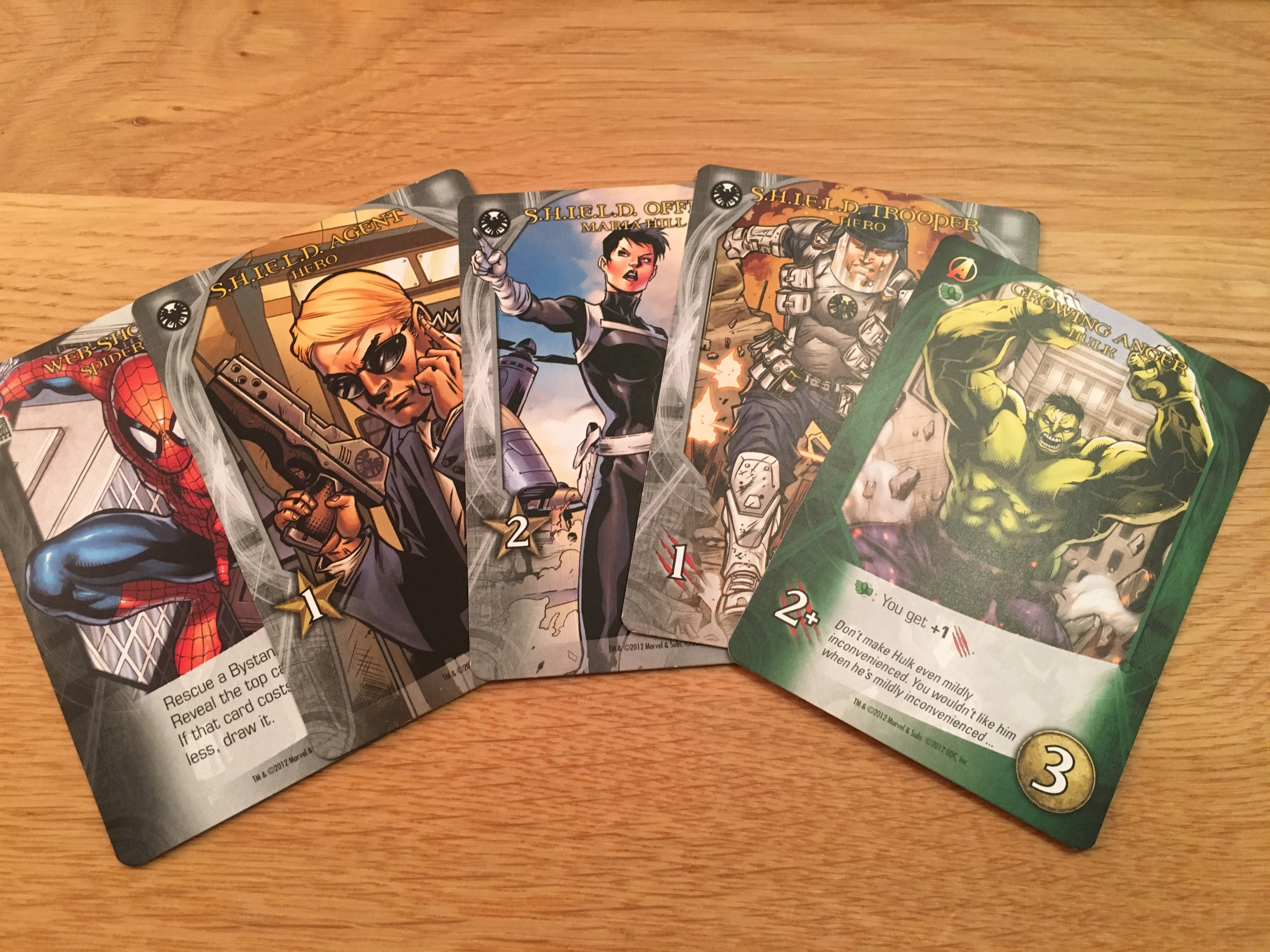 So that was a lot of explanation of the mechanics of the game - but how does it play? Is it fun? Well on the whole I would say yes, it’s really quite a good game, with the super heroes realised quite well. The agents of shield are portrayed as expendable grunts with one of Nick Fury’s powers to essentially kill off an agent to provide an upgrade to a better officer. What can sometimes be a bit weird is having multiple of one character in your hand, it’s like having 4 Spidermans fighting at once. I guess it’s actually one super-hero and just multiple moves being performed, but if you can get over that then the game works. Whilst there is a competitive element, we have found that you’re essentially playing against the game, and randomness of the shuffled villain deck.