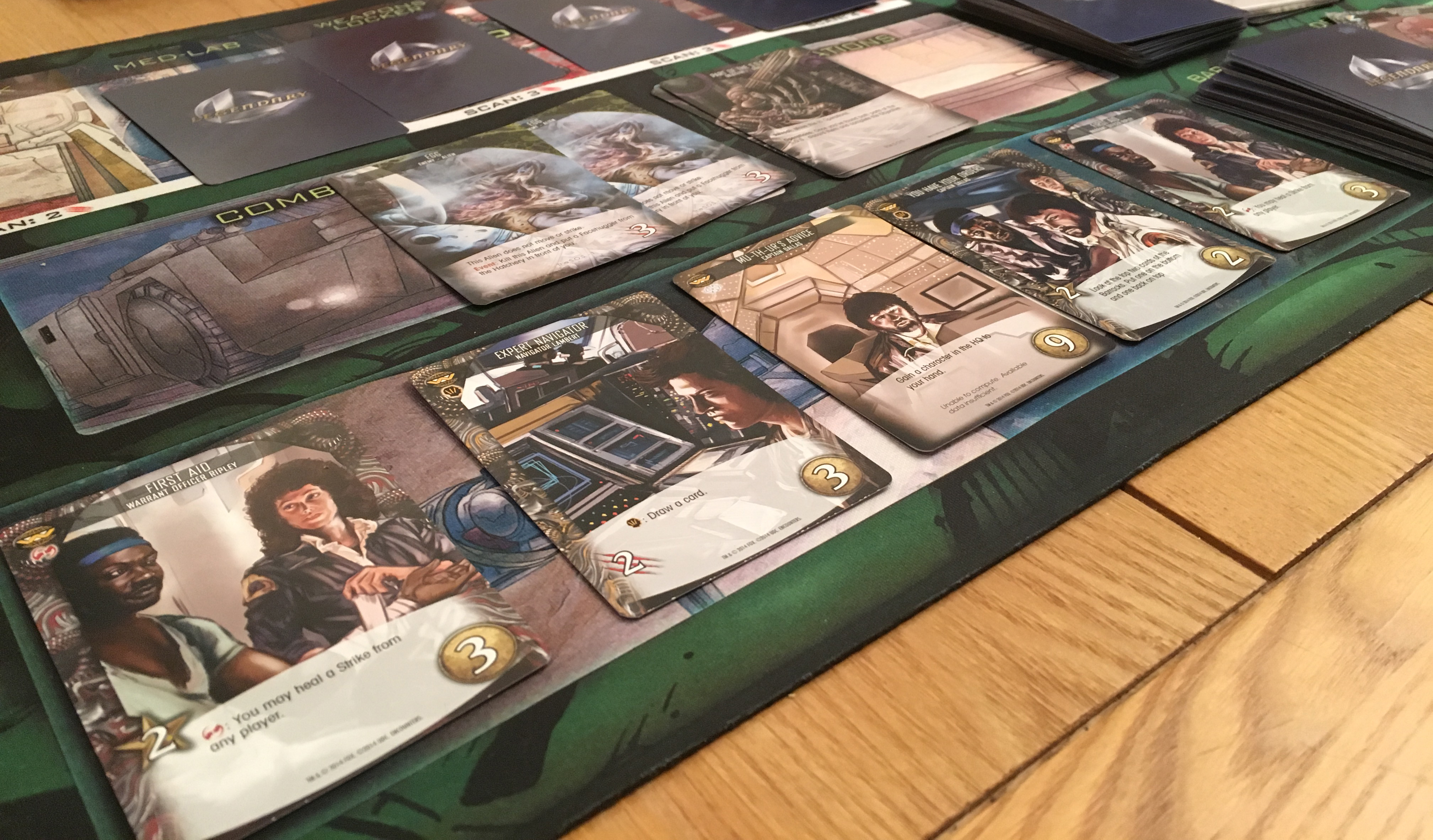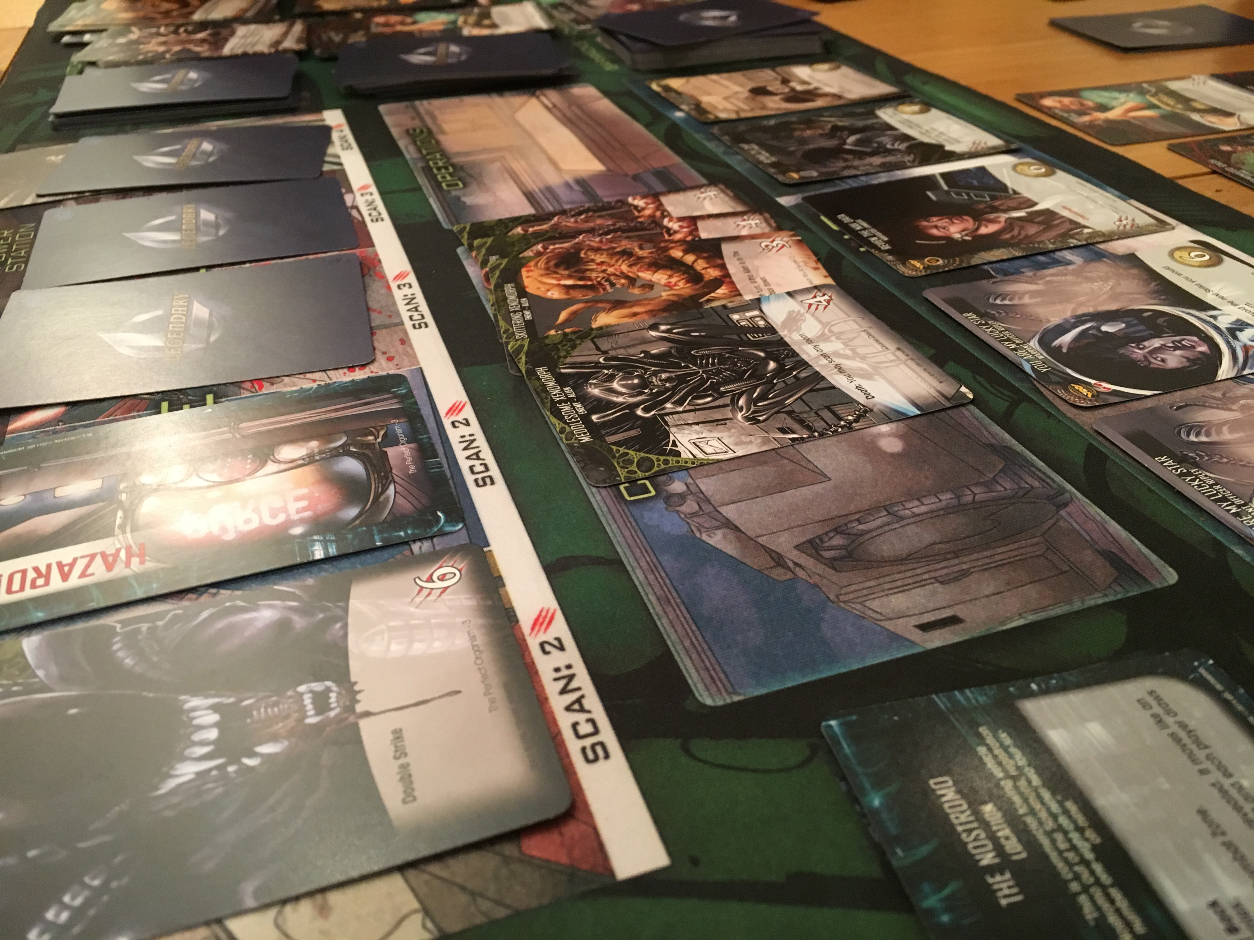Legendary Encounters: Alien uses mostly the same mechanics as the Marvel version, but I found the scenarios, that attempt to follow the story of each of the 4 films, much more atmospheric. Goals such as clearing and sealing the air vents or getting to the escape pod before the Nostromo explodes.