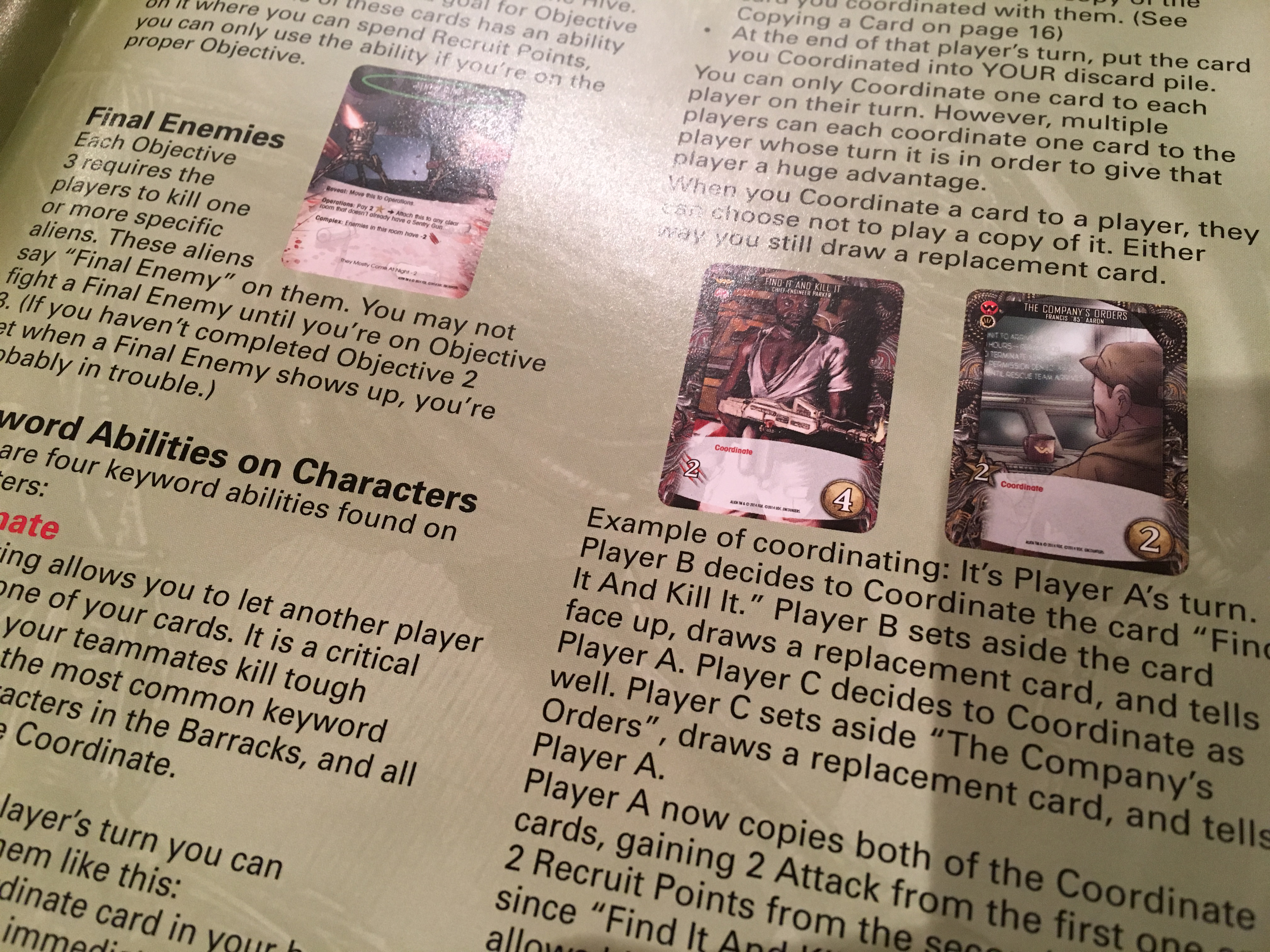 The game also feels more difficult too, perhaps it is rebalanced for a more adult audience. The improved setting does come at the expense of fewer characters, but they are all still fantastic quality and represented well by the skills on offer. They utilise the source material really well - you have to scan cards to reveal what they are - it could be an Xenomorph to fight, Jones the cat to recruit, or an catastrophic event is triggered. Alien pushes the cooperation further, allowing you to share cards, and as far as I can remember, there is no single player goal or victory points - the game is hard enough to beat when playing together!