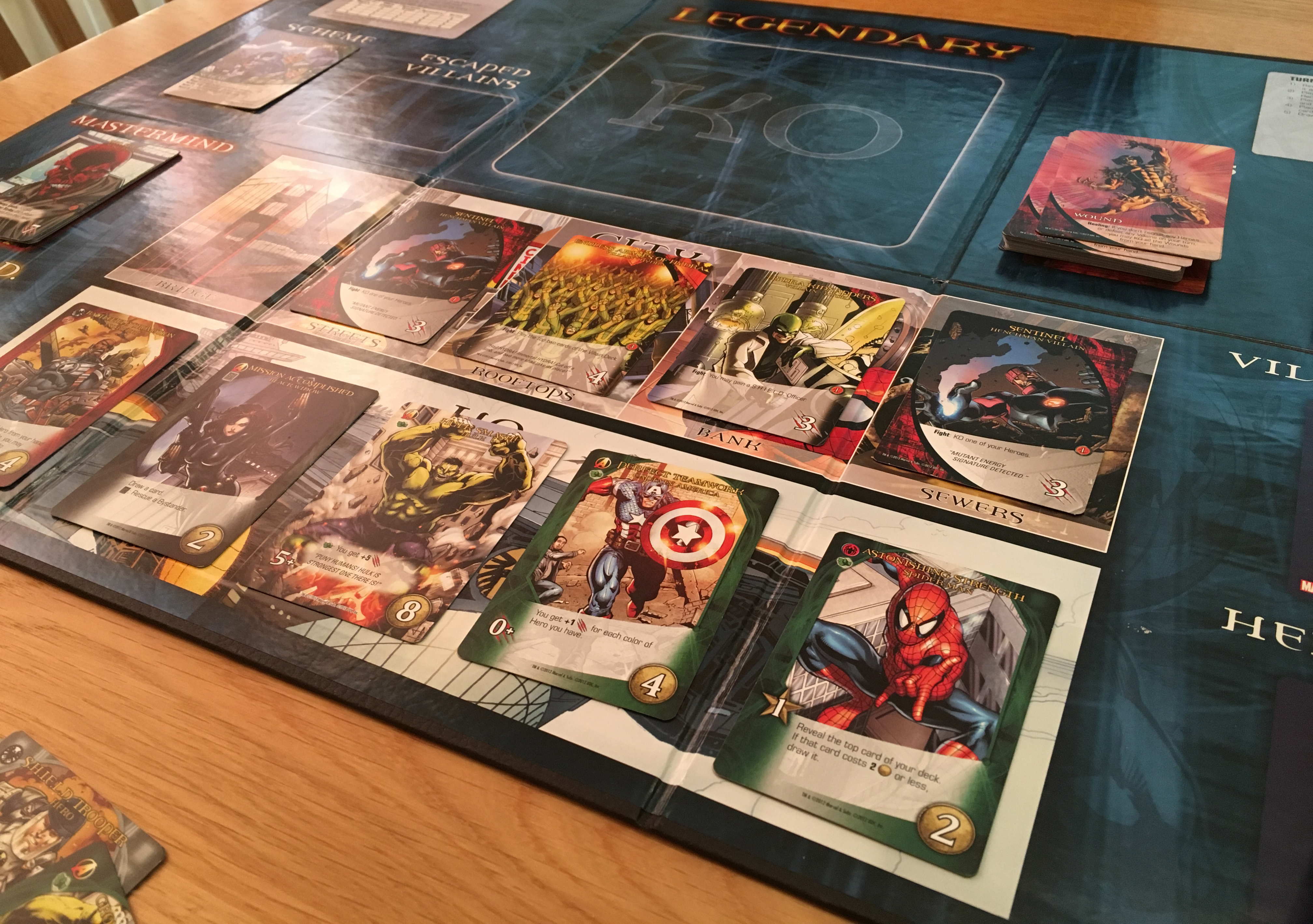 If you are strong enough, you can fight the mastermind, the victory condition of most scenarios is to beat the mastermind 4 times. If you win, each player counts their trophy pile of defeated villains & masterminds, with each having a different victory point value based on difficulty to defeat. This is where the competitive aspect comes in - you could decide you want to hoard all the fight-y heroes, but this may weaken your team and result in none of you defeating the game, it becomes a bit of a gamble.