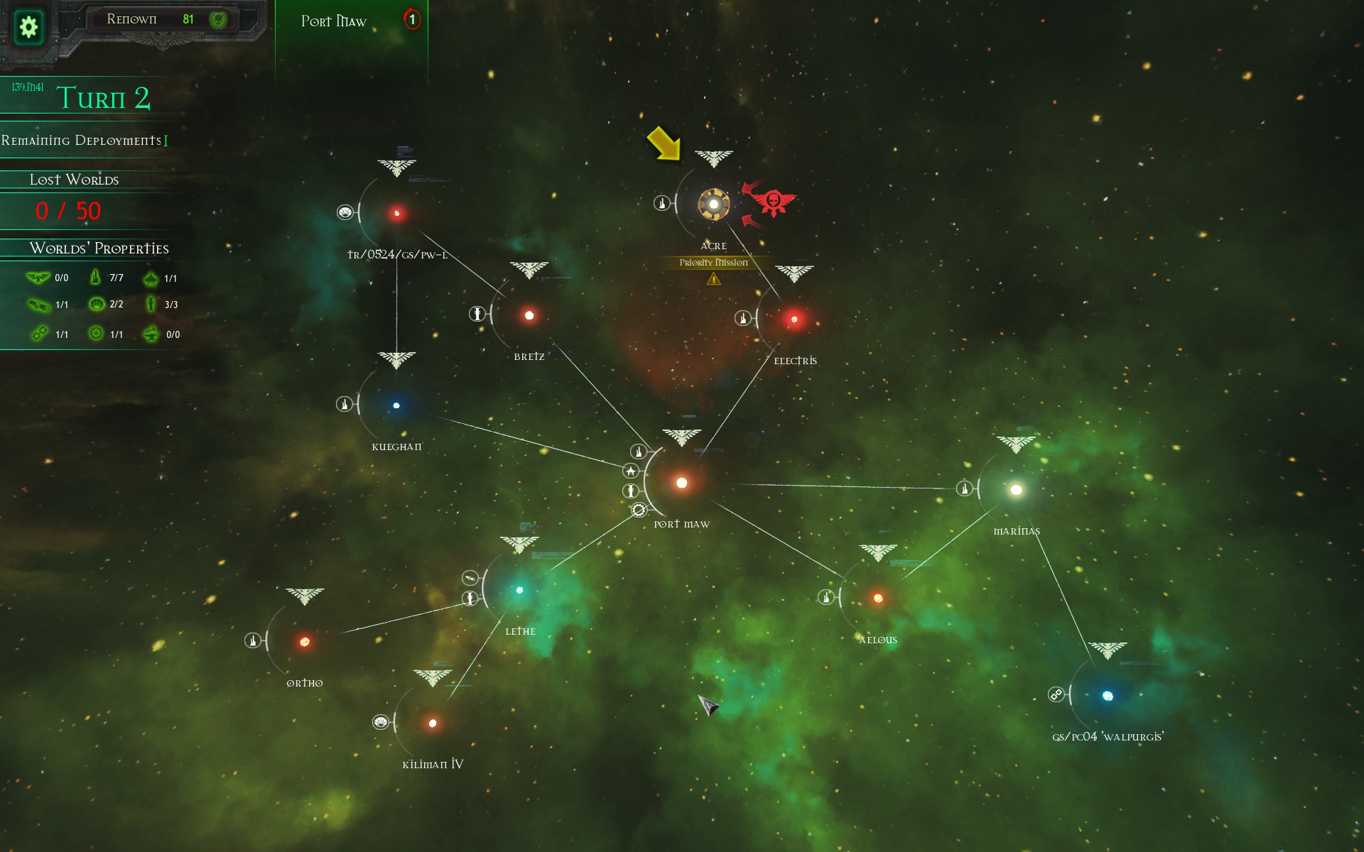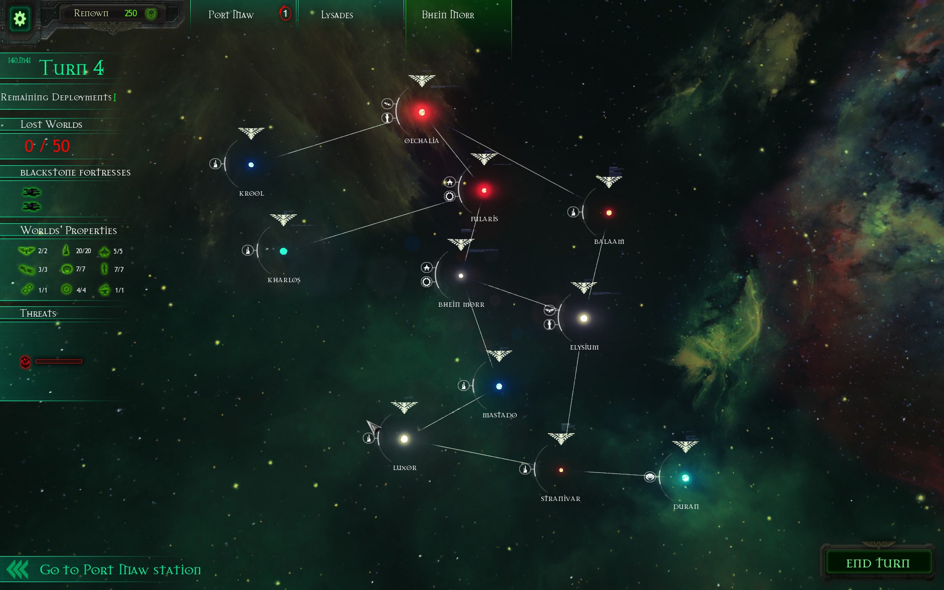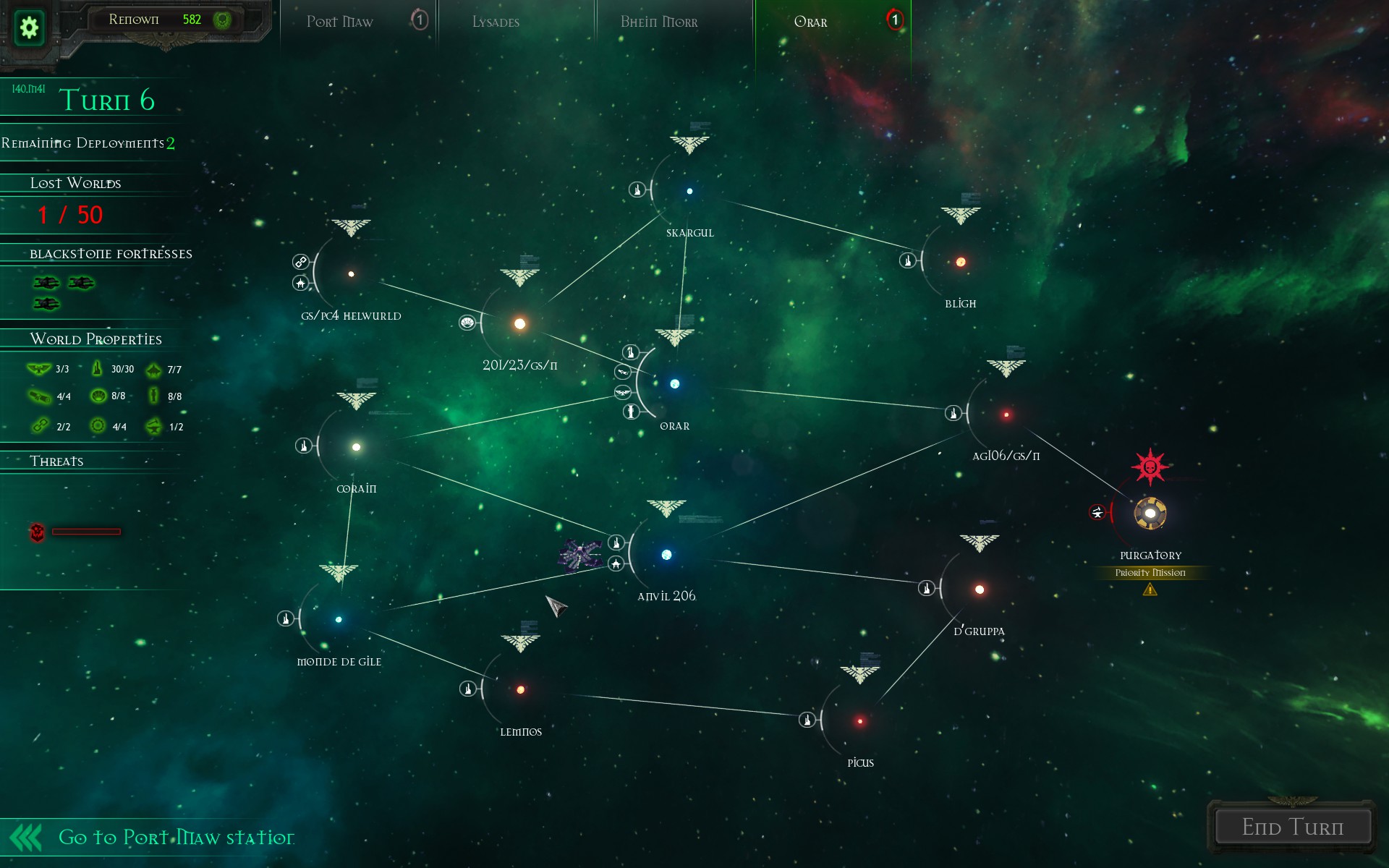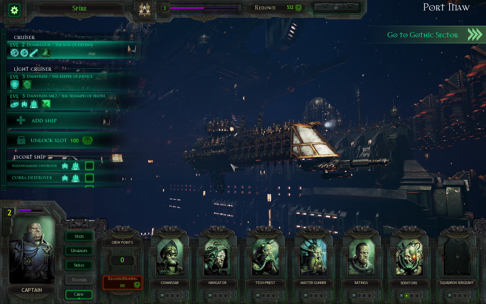 As you play the game you earn points allowing you to unlock new ships from various classes which are battleships, battlecruisers, cruisers, light cruisers and escorts. You also unlock points to improve your ships. Eventually you can assign a ‘favour’ to a ship which is a kind of deeper lore alignment which different bonuses. For the Imperium you could align your ship with The Inquisition, Adeptus Mechanicus, the Imperial Navy or Adeptus Astartes while Chaos can align to one of the four Chaos gods.