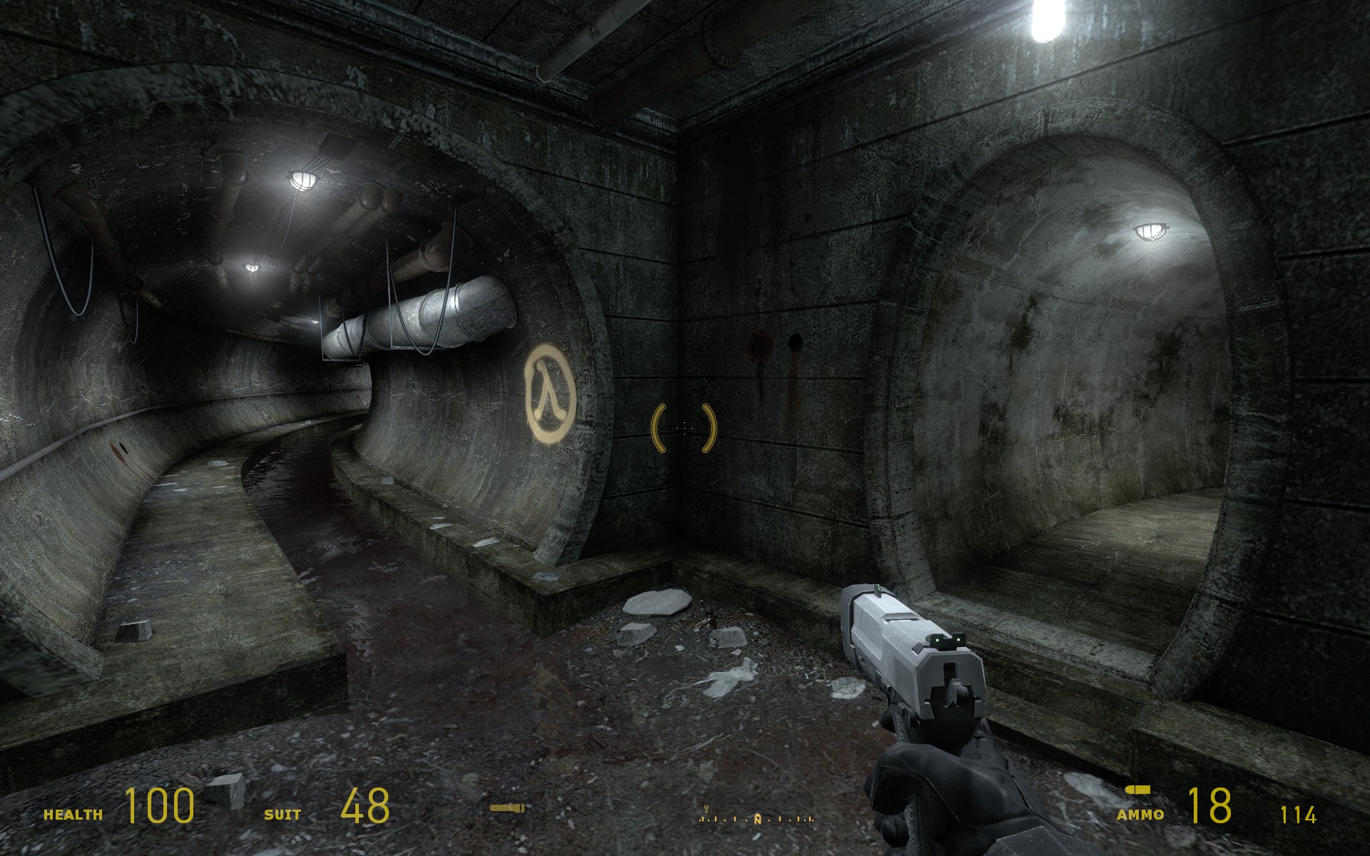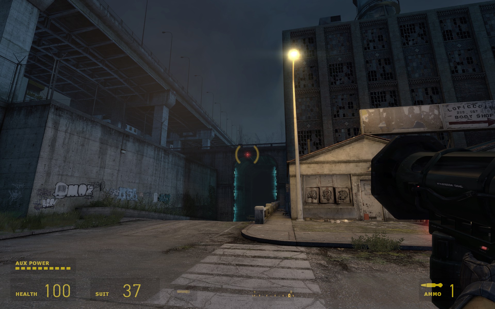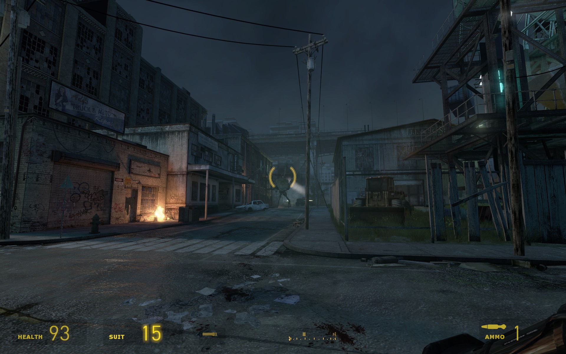 Beyond a new weapon and some AI changes the game doesn’t deviate far from the Half-Life 2 formula in that it shares weapons, enemies and universe. A new weapon replaces the Gravity Gun allowing you to perform high jumps and survive large drops. This new weapon is put to good use once found and is necessary to pass through a number of areas. Another difference is that the sentry turrets and zombies only work in the dark which is used rather interestingly at the beginning. At one point you have to navigate a pit filled with zombies in the dark.