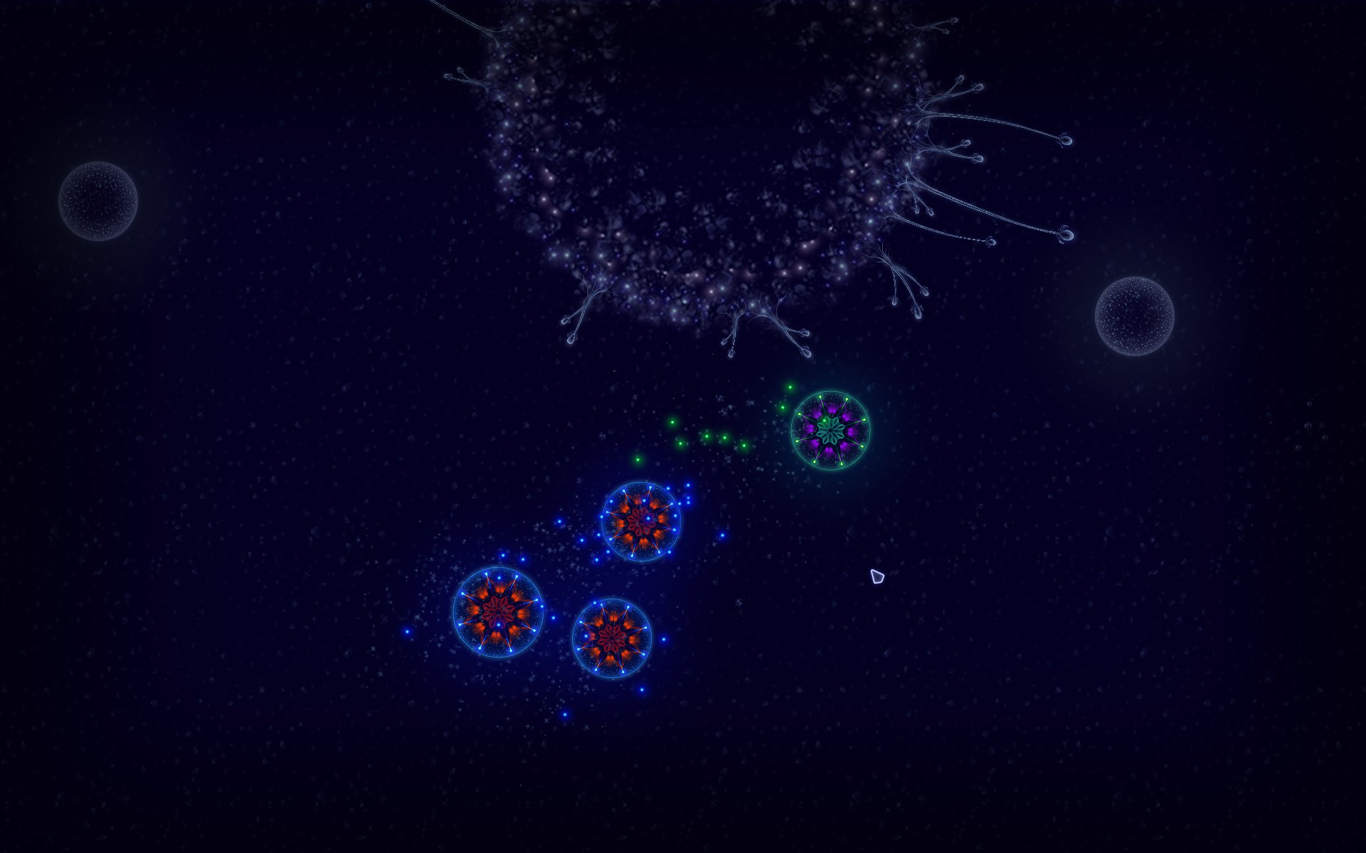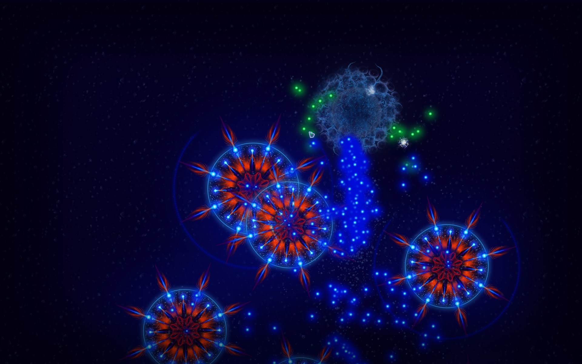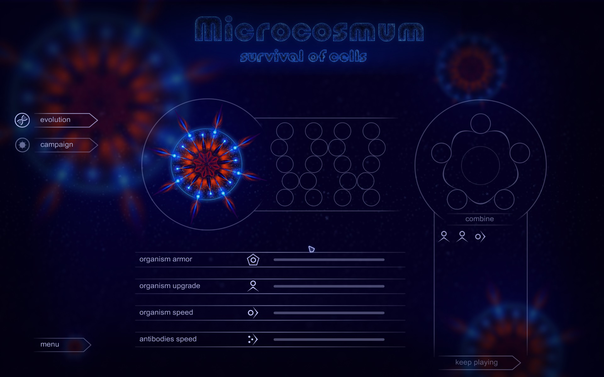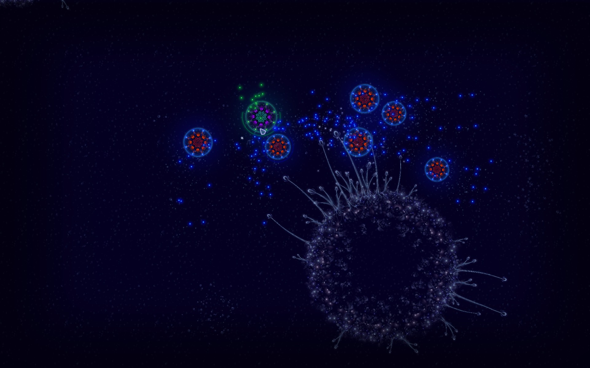 You control two units, cells, which you need to capture all of to win and antibodies which are produced by cells. Antibodies can be used to capture other cells or upgrade your own cells to improve them. Your chances of winning increase as you upgrade cells or win over new cells causing you to gradually outnumber your opponents.