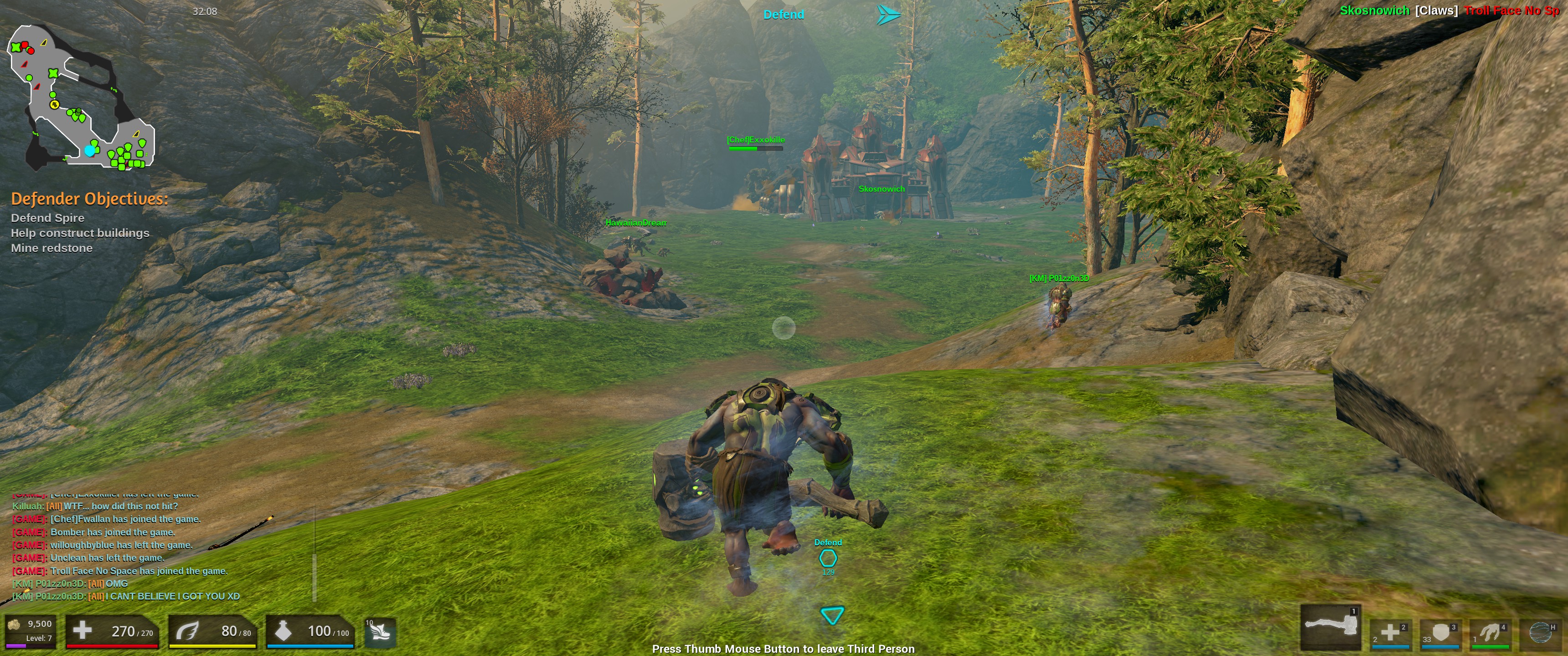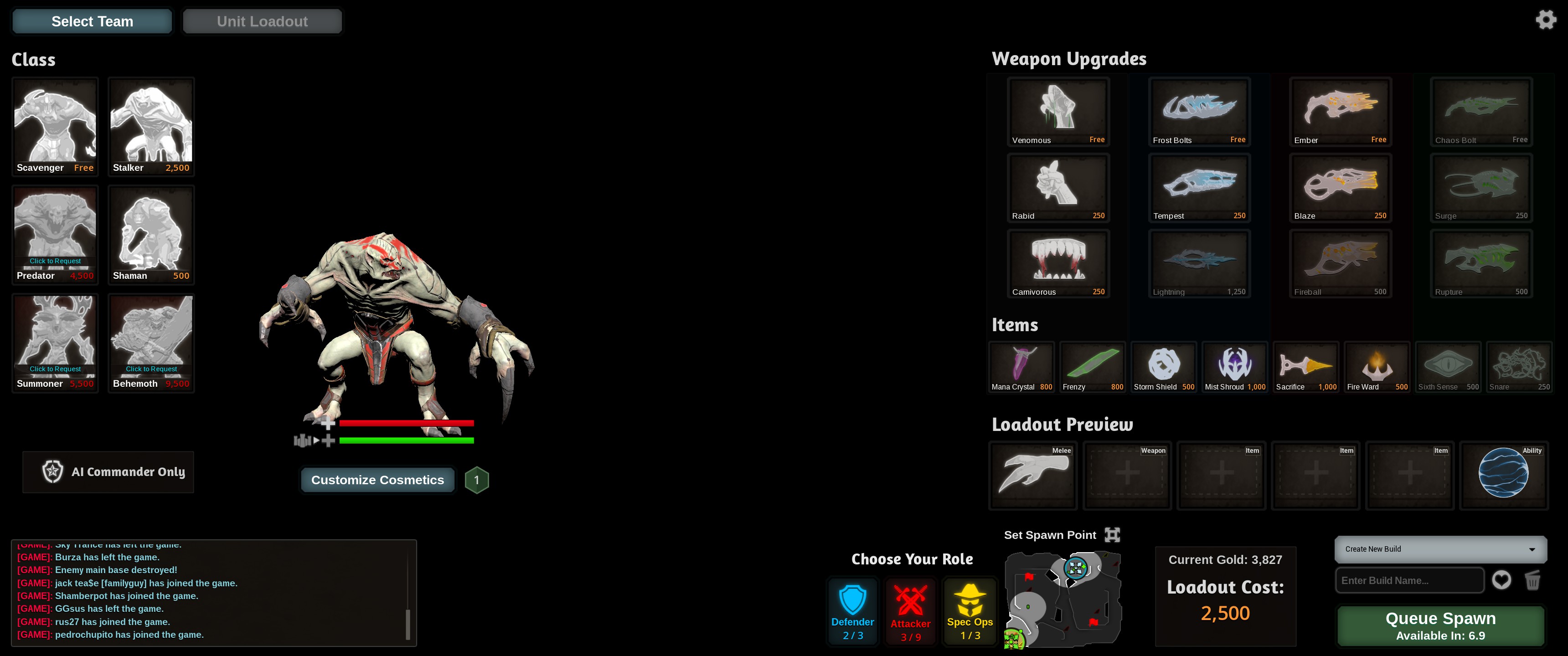 Savage Resurrection is a team fight between humans and beasts with the victor being the first to destroy the other team’s main structure. As you progress in the match you level up which increases stats health, gathering amount, stamina, etc. and earn gold. Gold allows you to to purchase different characters alongside weapons and items to make your custom loadout. Both teams have similar characters to purchase which are light(free), medium, heavy, healer, artillery and an expensive endgame unit in the form of a mech for humans or the Behemoth (huge dude with tree trunk as weapon). Each team has unique items to purchase and a few different types of weapon to buy. Beasts are slightly better at melee while humans seem to have a better selection of weapons.