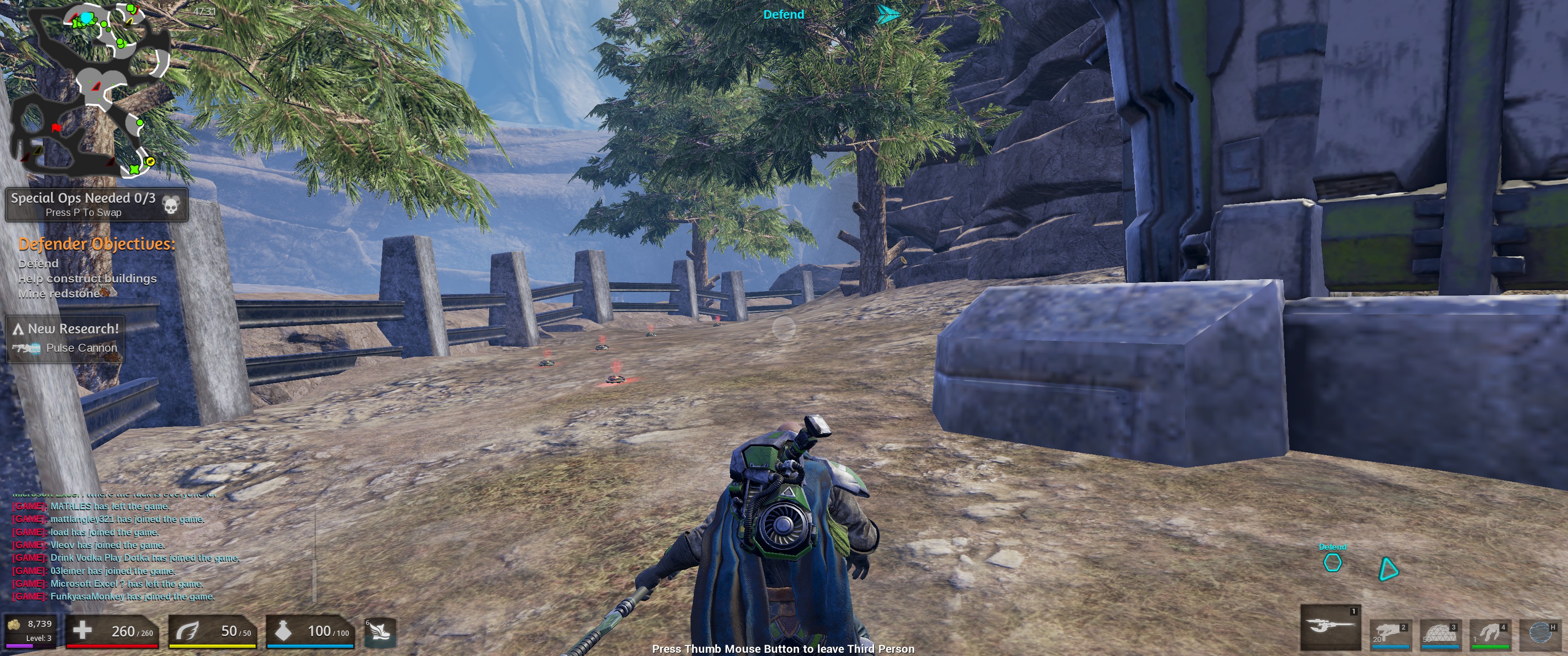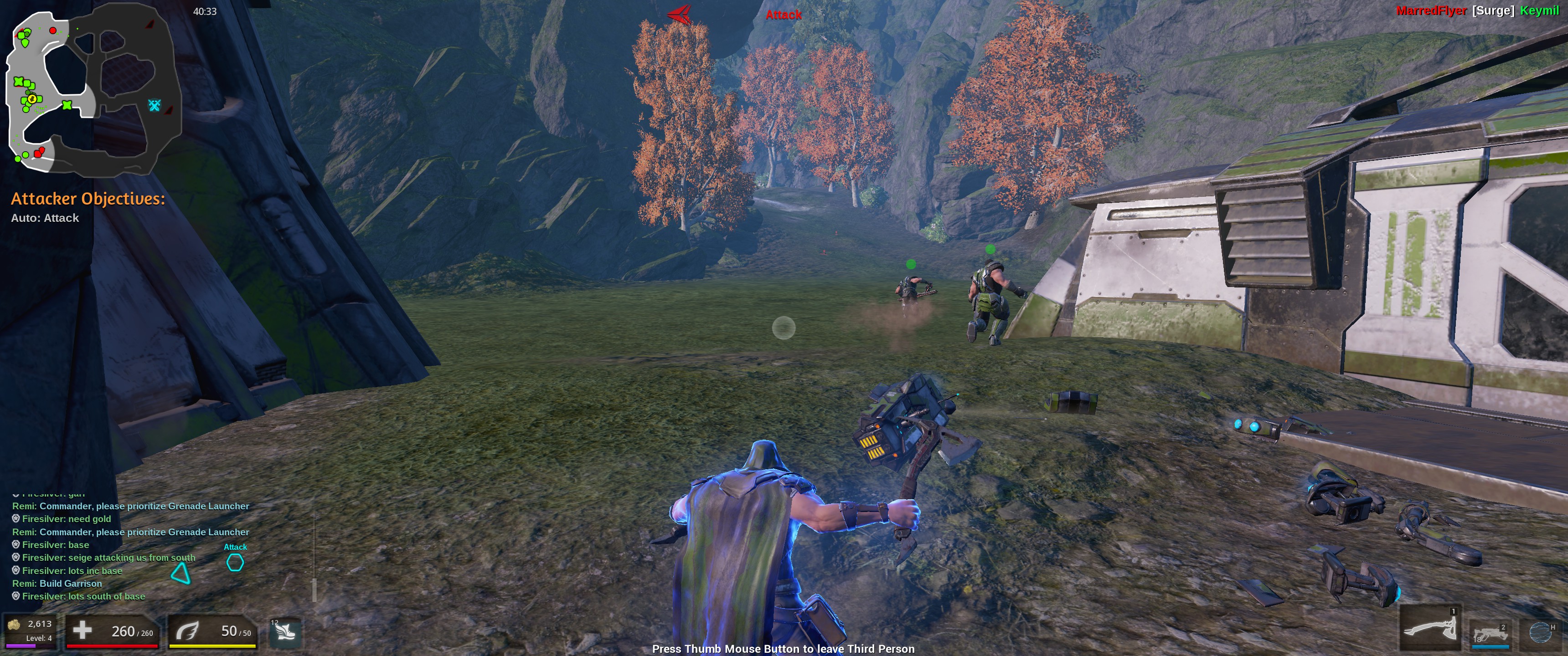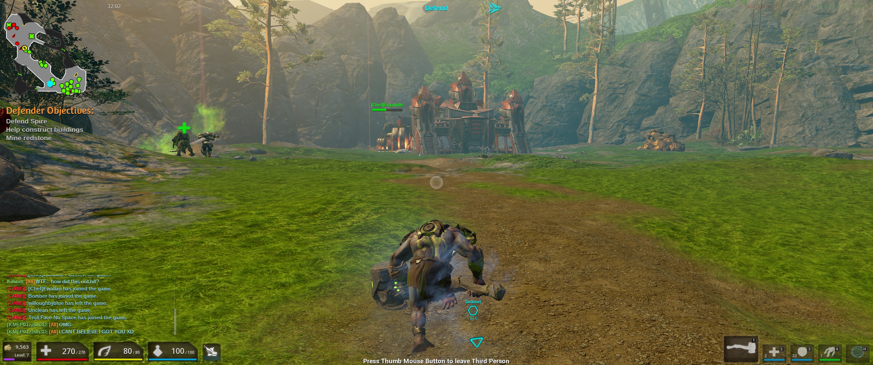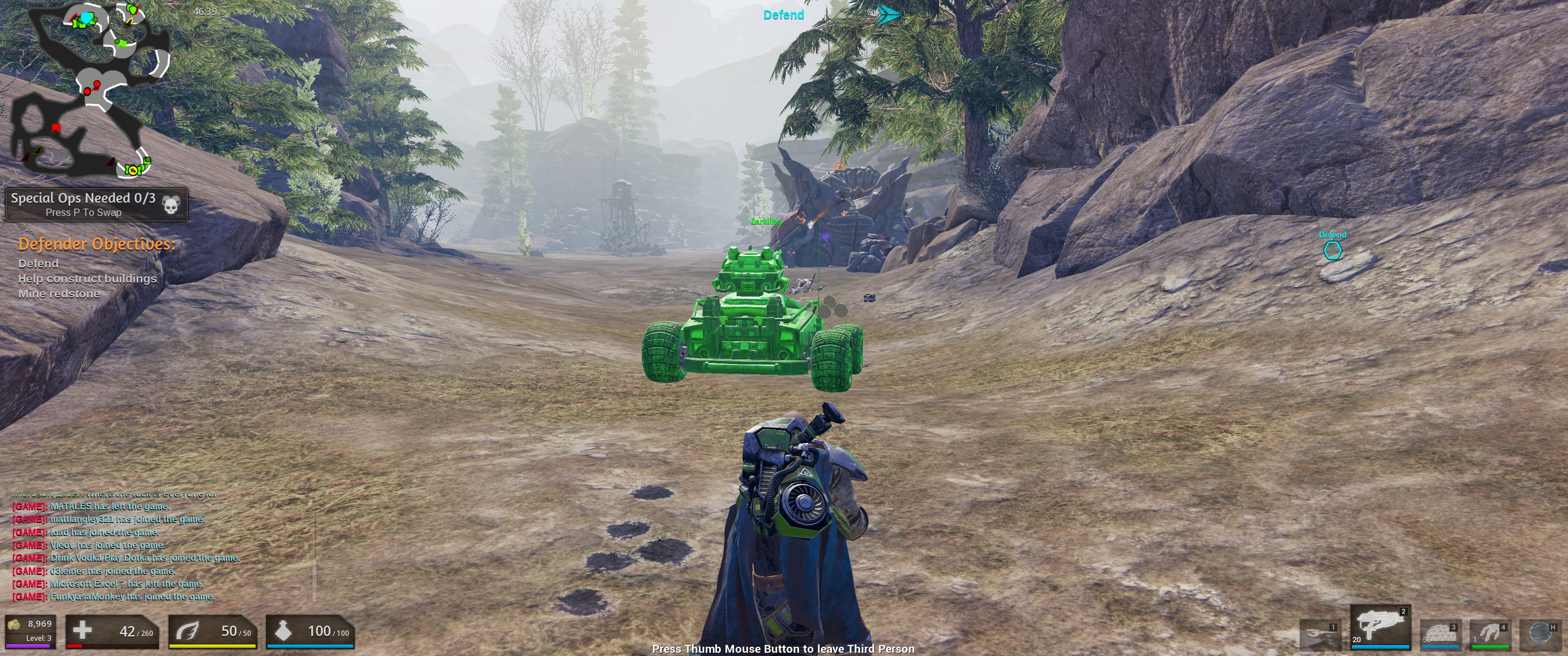 What makes Savage Resurrection different is that each team has a commander who has a top down real time strategy type view who builds structures, researches, gives orders, collects resources, etc. A human commander is required in ‘Advanced Mode’ while a AI commander is provided in ‘Standard Mode’. Because of this ‘Standard Mode’ plays a bit more like a team deathmatch because predictability of the commanders actions while the ‘Advanced Mode’ can lead to a great range of different matches. Obviously, having a human commander can also be a bad thing because if you have a bad one you’re a bit stuffed - a problem this particular type of game will never fix.