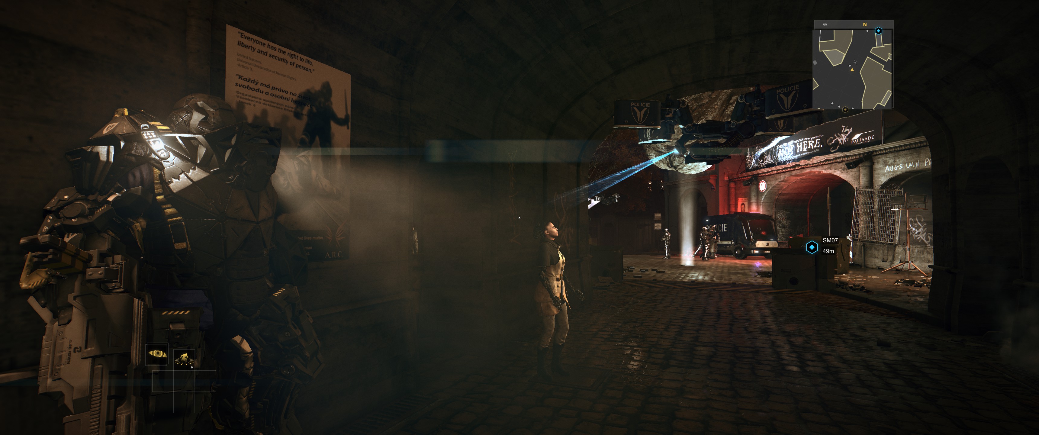 My main gripe with Mankind Divided is the main storyline. It’s just a bit dull. The protagonist, Adam Jensen, has already played a massive part unlocking conspiracies and saving the world in Human Revolution and now he’s back as a kind of dull international policeman. I feel like Adam Jensen was forced into this title just because he was in the last one when a new character and time-period would have had a more meaningful impact. This was really drilled into me when I found out some secret augments had been added to Jensen during his time unconscious in the expansion (to the last game) which had been accidentally activated during the story - ridiculous.